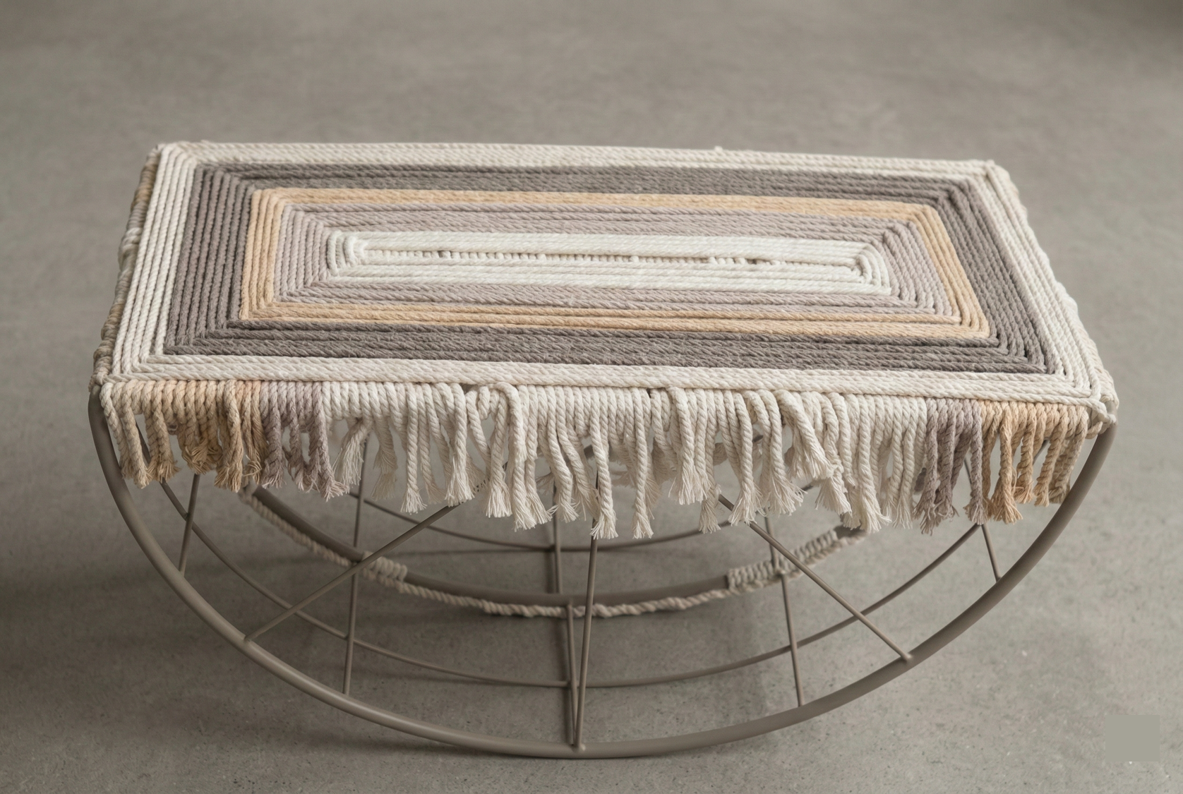 שרפרף מתנדנד לרגליים, הבוחן את המפגש בין מבנה קשיח לטקסטיל רך.